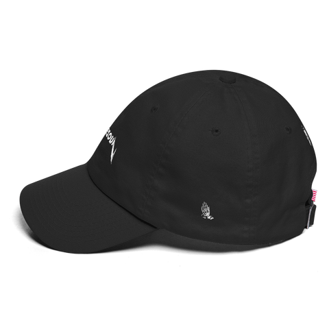 This hat is made in the USA, so wear it proud! It's unstructured with a curved visor and adjustable strap, and an American flag sewn on the back.